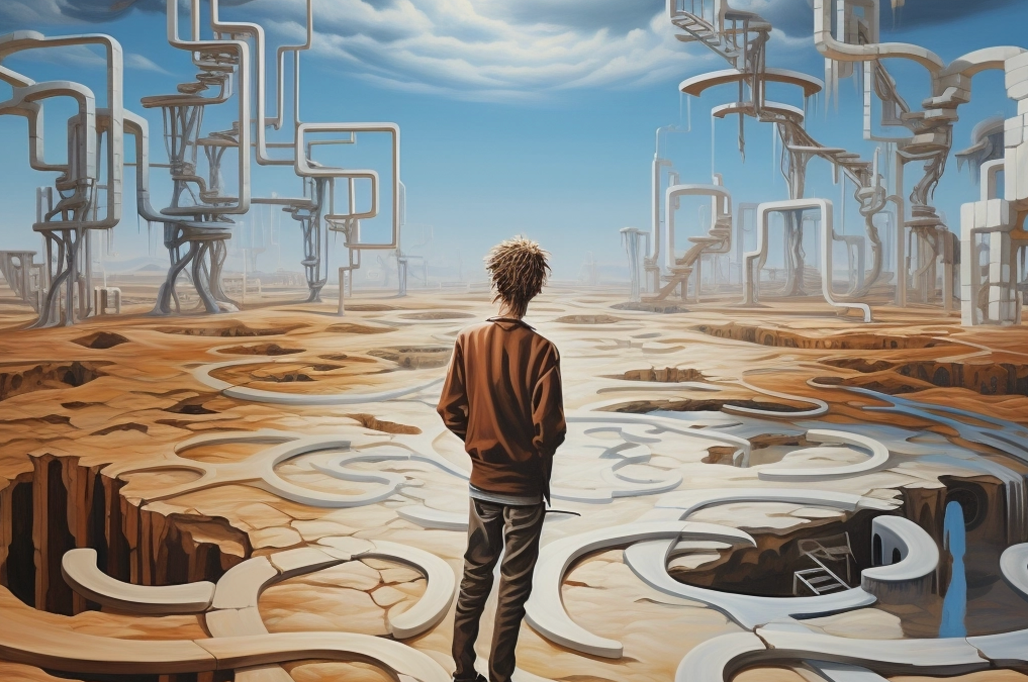 Prompt: digital collage [man 1950's] in the style of realism combined with surrealistic elements [mount Everest on his head ] , [orange], [grey], professional photography, dynamic elements --v 5.0